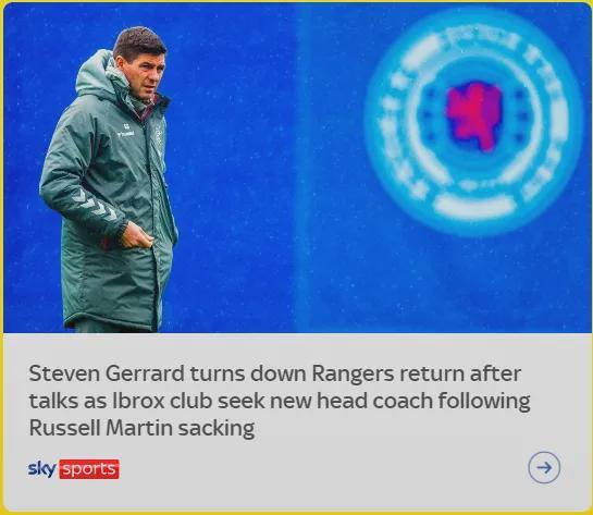 天空体育消息,杰拉德不会重返流浪者担任主帅,在经过谈判之后,杰拉德退出了帅位的竞选。