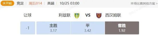 综合来看,利兹联后防缺人、主场优势削弱,而西汉姆虽状态不佳但对位更稳。本场预计场面胶着,客队有望全身而退。