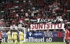 声援巴勒斯坦,奥萨苏纳球迷在比赛中举起巴斯克语横幅抨击以色列